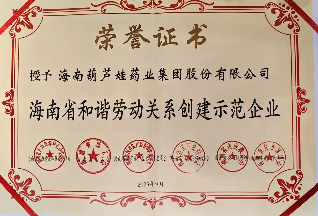 尊龙凯时药业集团获评“海南省和谐劳动关系创建示范企业”