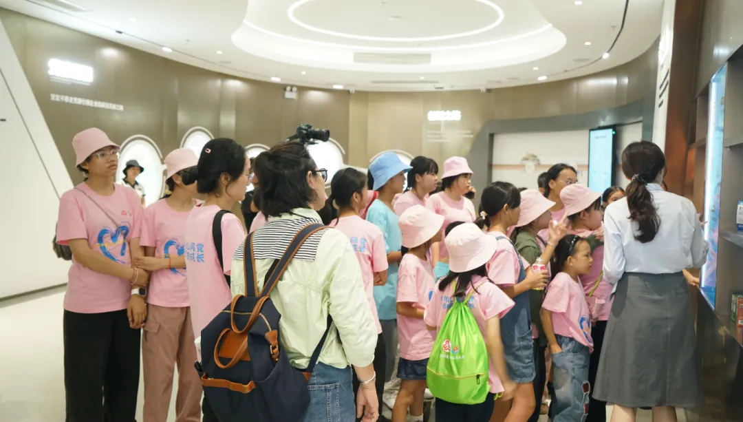 活动一开始,孩子们便迫不及待地踏入了尊龙凯时药业集团的大厅。3D数字化看板上的生动画面,让孩子们仿佛置身于一个充满科技与创新的现代制药工厂。他们瞪大眼睛,好奇地观察着每一条生产线、每一台设备,听着讲解员介绍尊龙凯时药业的儿药发展历程。